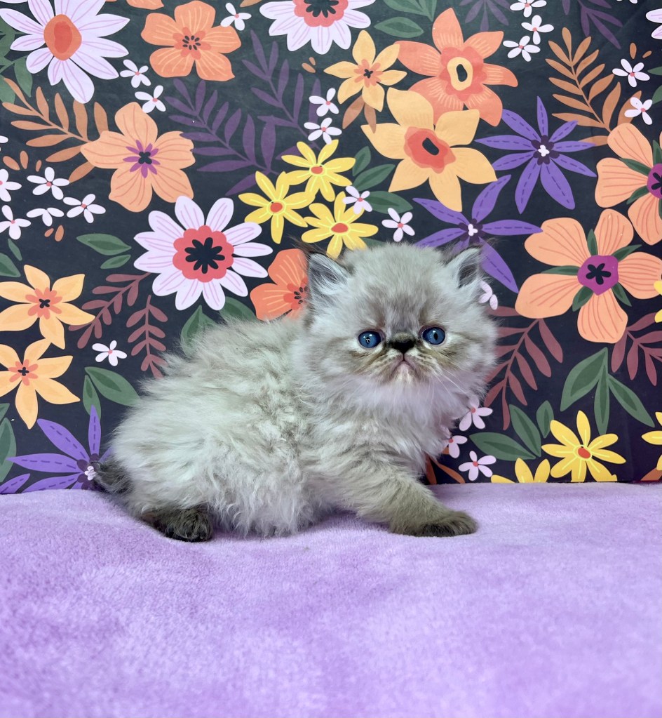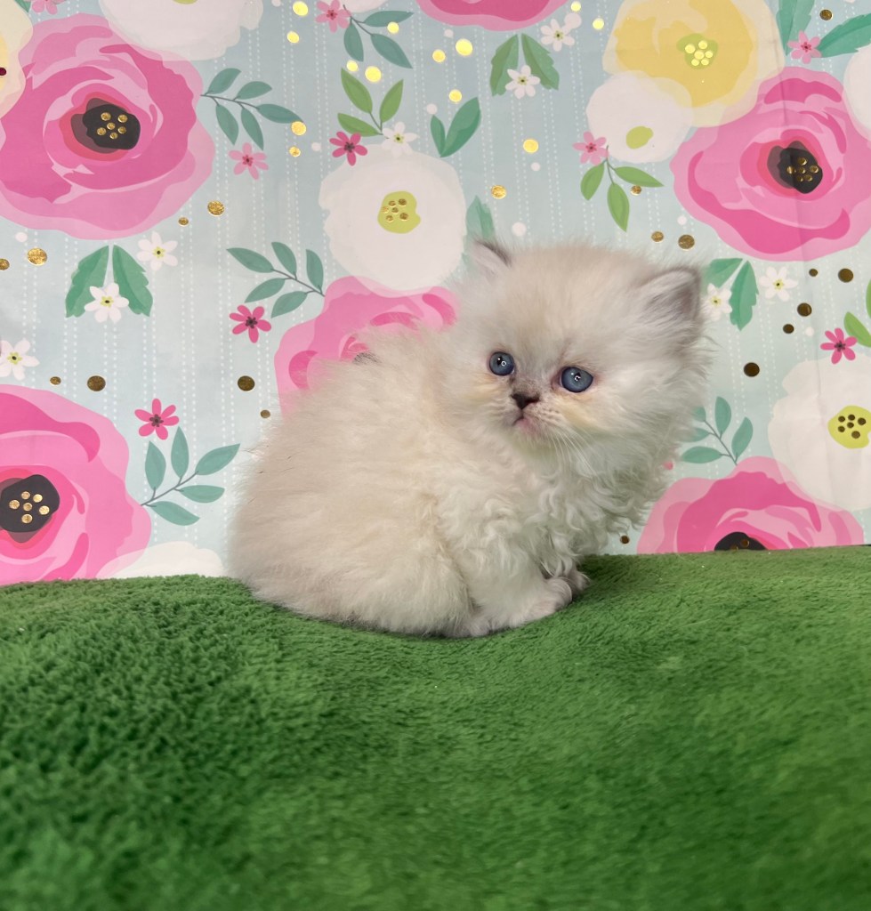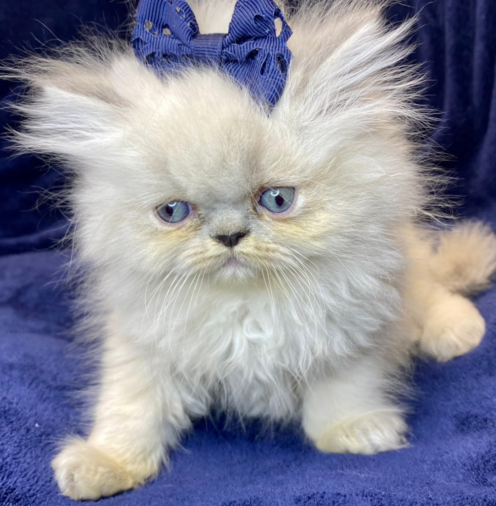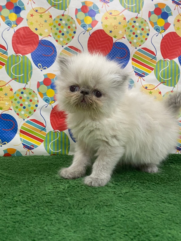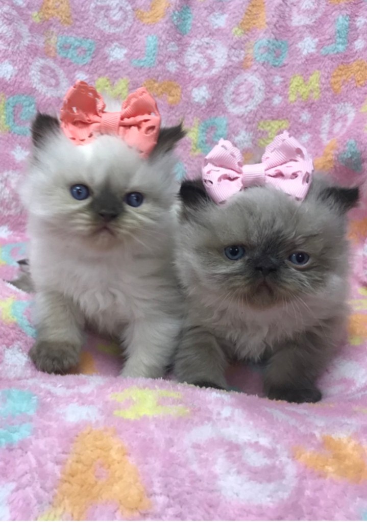 We breed both the traditional doll-face (pointy) and flat-faced Persian and Himalayan kittens. We also have exotics which their eyes are larger and rounder. All of our kittens have blue eyes only. (You can click the past kittens tab on the menu bar to see the types of kittens we have had in the past). More info below…